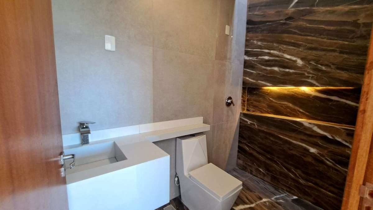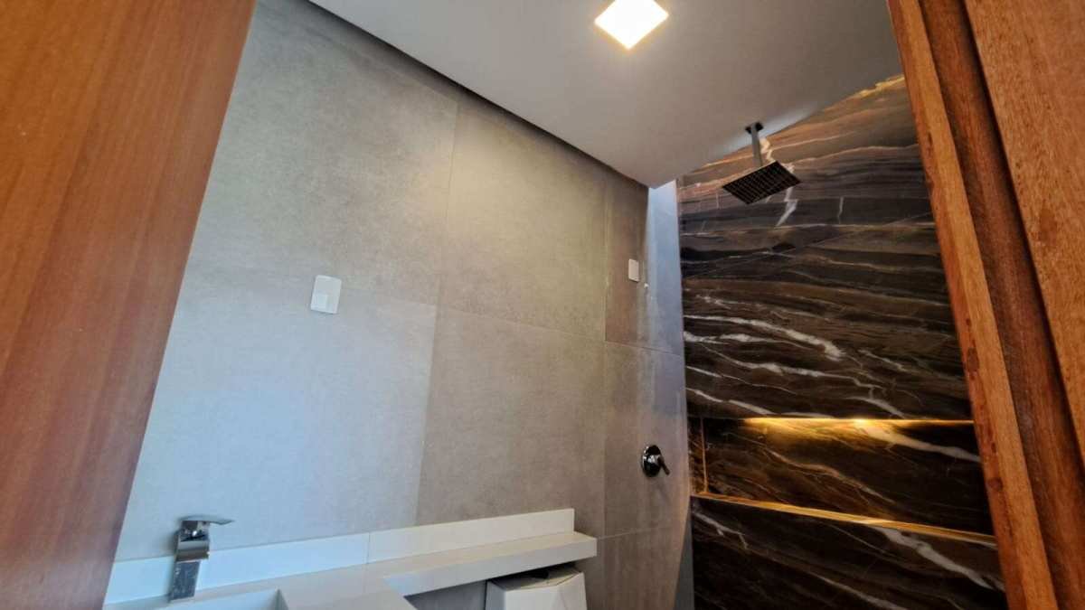 ? Banheiros com duchas de teto, torneiras cascata e nichos iluminados