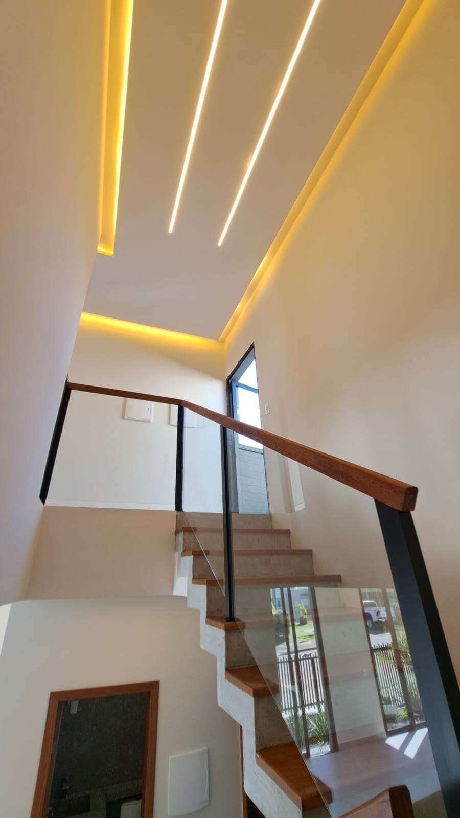 ? Iluminação 100% LED com perfis, cortineiros e nichos iluminados
